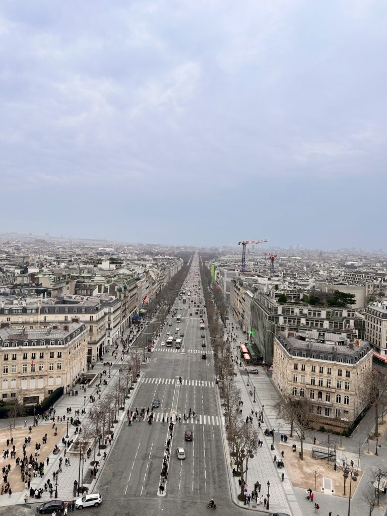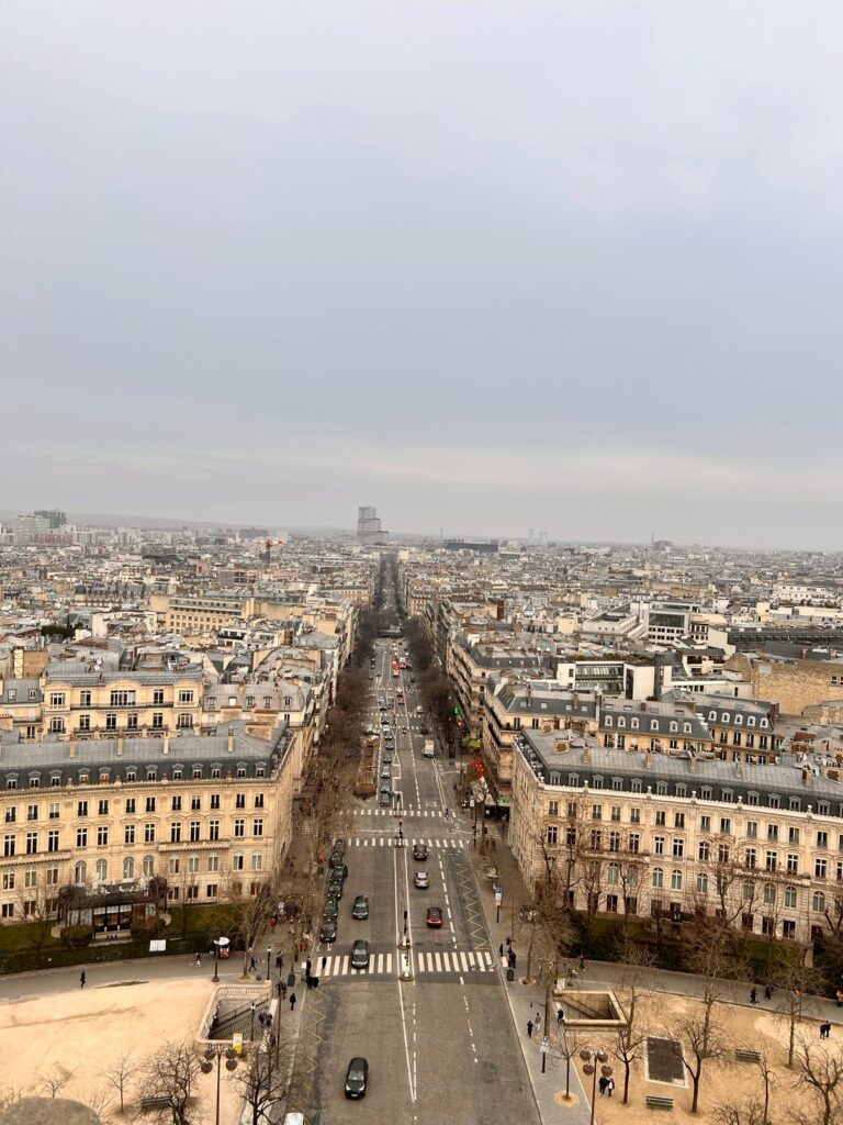凱旋門の屋上からシャンゼリゼ通りを一望できました。エッフェル塔も見えました!