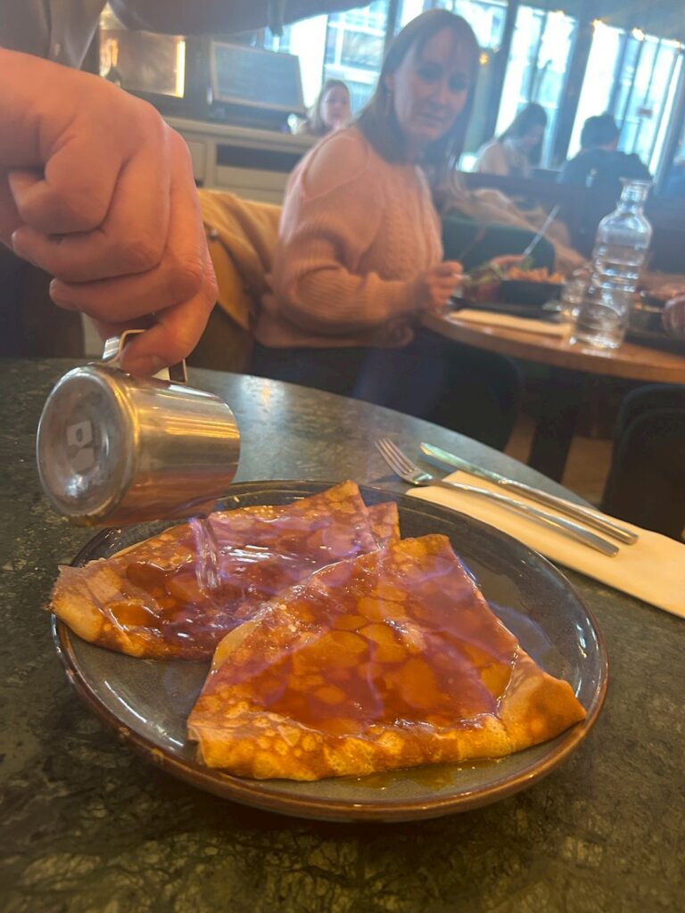 デザートにはクレープを頼みましたが、このクレープ、めちゃくちゃお酒感が強くて食べ切るのが大変でした。