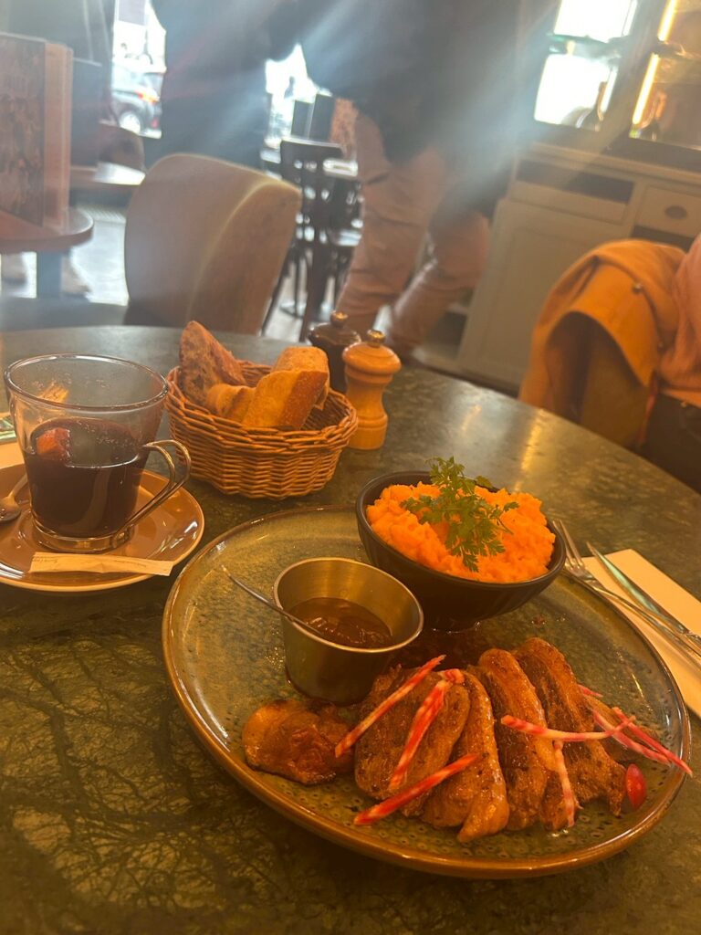 私はお腹が空いていなかったのでホットワインを頼み、相方はアヒル?の料理を頼みました。