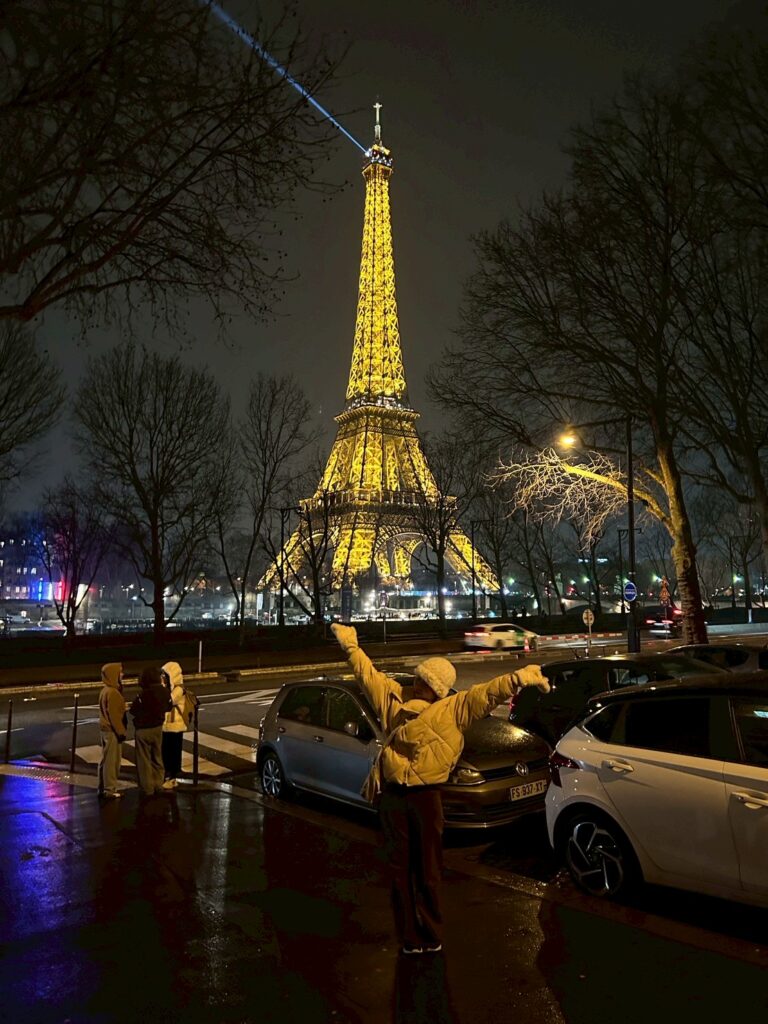 エッフェル塔はライトアップされていて、