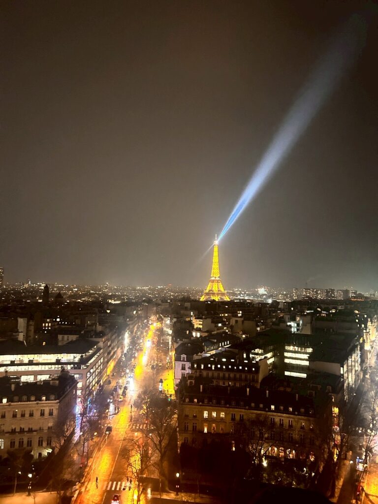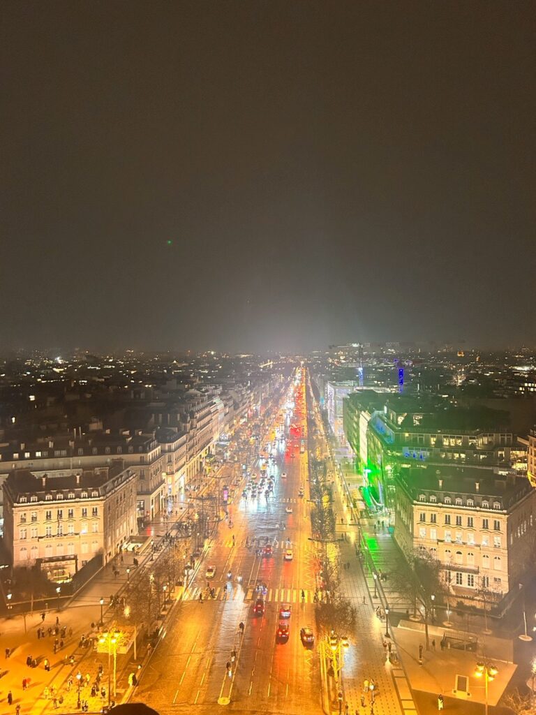 夜の凱旋門の屋上から見る景色は、昼間とは違ってとても幻想的でした。