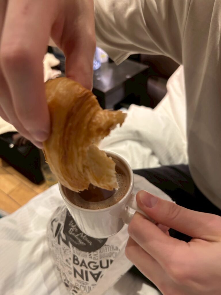 クロワッサンはホットチョコレートやミルクにディップして食べるのがマストだそうです。