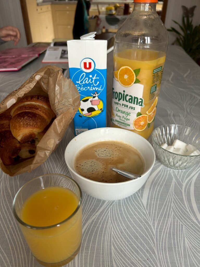 朝からパン屋さんに行きクロワッサンとパンオショコラを買ってきてくれました。