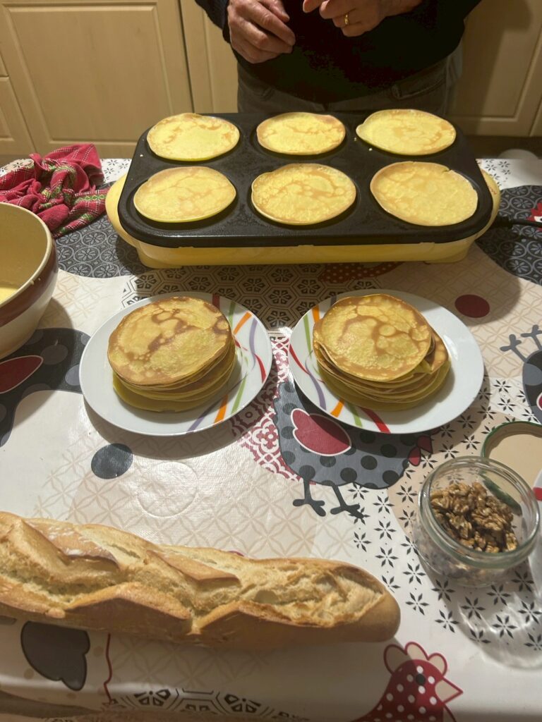 夕食用におばあちゃんがパンケーキを焼いていました。💛